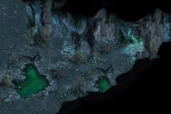 冰冷幽蓝的冻土和侧边支棱的冰凌,组成了蜿蜒的地下通道。凡是进入这里的生物都会受到莫名的蛊惑,产生幻觉,对自己的队友们拔刀相向,互相残杀直到所有人都死亡。